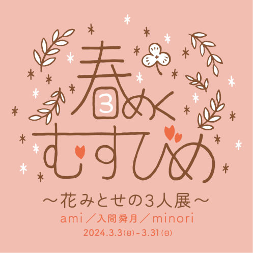 今年最初の展示会は、今回で三回目の開催となる三人展『春めくむすびめ』です。開始日も三月三日な三尽くしの展示となります。