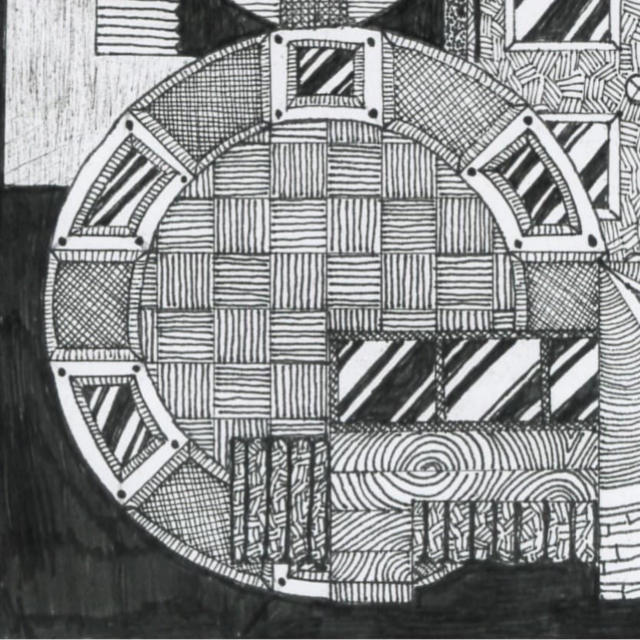 大竹悦子さん「敬意を込めて」。ボールペンのユニークなモノクロ画が展示されます。