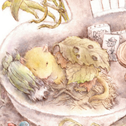 山口まさよしさんが絵を担当された絵本「おちばのプール」(文・西沢杏子 子どもの未来社)の原画展です。色鉛筆で繊細に描かれた秋の風景をご覧ください。