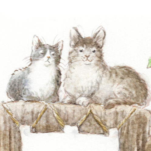 つがねちかこさんの「うちのねことか」展です。タイトル通り、作家さんのお宅の猫さんを描いた作品が展示されます。