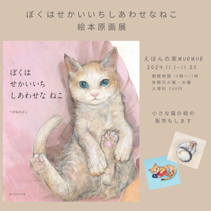 つがねちかこ「ぼくはせかいいちしあわせなねこ絵本原画展」2024年11月1日(金)~11月30日(土)