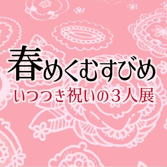 今年最初の展示会は、今回で三回目の開催となる三人展『春めくむすびめ』です。開始日も三月三日な三尽くしの展示となります。