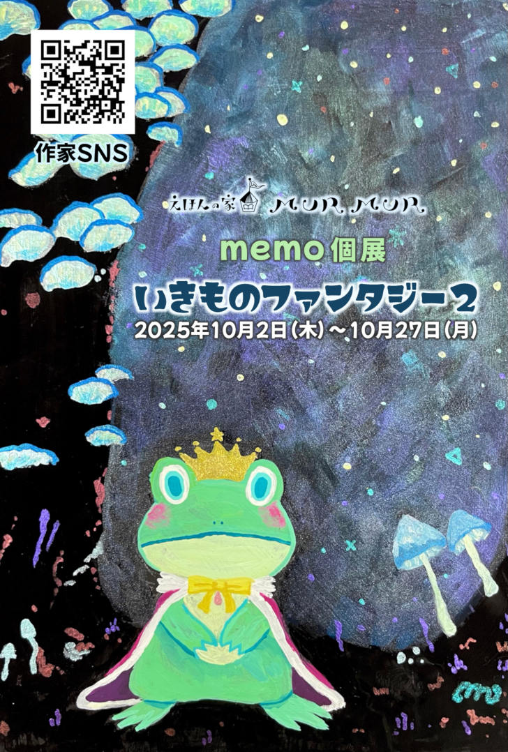 memo 個展「いきものファンタジー2」 2025年10月2日(木)~10月27日(月) ※展示期間外は休館となります※ Info 在廊日については作家SNSをご覧ください。 作家情報 memo Instgram @memochel